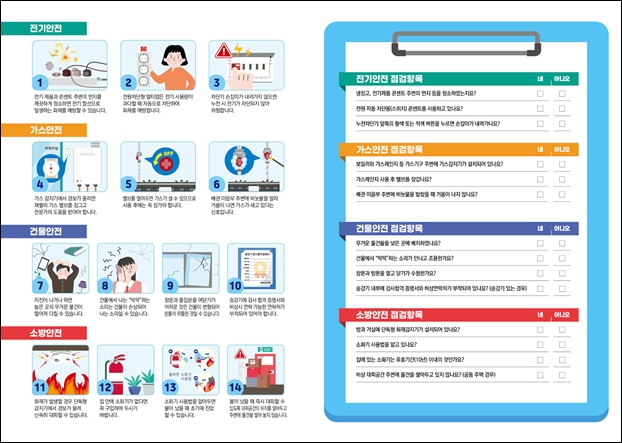 Á¡°ËÇ¥¿¡´Â Àü±â, °¡½º, ¼Ò¹æ, °Ç¹° ¾ÈÀü¿¡ ´ëÇØ ½º½º·Î È®ÀÎÇÒ ¼ö ÀÖ´Â ³»¿ëÀÌ ´ã°ÜÀÖ´Ù.