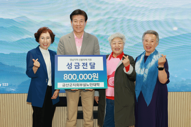 ±Ý»ê±º ±Ý»êÀ¾¿¡ ¼ÒÀçÇÑ ±Ýȫȸ°æ·Î´ç(ȸÀå ±¸Èñö)¿Í ´ëÇѳëÀÎȸ±Ý»ê±ºÁöȸºÎ¼³³ëÀδëÇÐ(ÇÐÀå ¾ç¸í¼ø)Àº Áö³­ 4¿ù 30ÀÏ ¿µ³²Áö¿ª »êºÒ ÇÇÇØ º¹±¸¸¦ À§ÇÑ ¼º±ÝÀ» ±âŹÇÏ¸ç µû¶æÇÑ ³ª´®ÀÇ ¼Õ±æÀ» ÀüÇß´Ù.