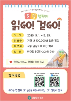 ±Ý»ê±ºº¸°Ç¼Ò´Â »çÁøÀÎÁõÀ¸·Î ÇÔ²²ÇÏ´Â 2025 °Ç°­»ýȰ½Çõ ¡®Àаí(GO), °È°í(GO)¡¯ 縰Áö¸¦ 5¿ù 1ÀϺÎÅÍ 25ÀϱîÁö ÁøÇàÇÑ´Ù°í 28ÀÏ ÀüÇß´Ù.ÀÌ ÇÁ·Î±×...