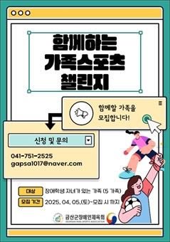 ±Ý»ê±ºÀå¾ÖÀÎüÀ°È¸´Â ¡®Àå¾ÖÀΠû¼Ò³â °¡Á· ½ºÆ÷Ã÷ 縰Áö¡¯¸¦ ÁøÇàÇÑ´Ù°í 7ÀÏ ¹àÇû´Ù.À̹ø Çà»ç´Â Àå¾Ö û¼Ò³âÀÌ °¡Á·°ú ÇÔ²² üÀ°È°µ¿À» ÇÔÀ¸·Î½á ½Åü °Ç°­ ÁõÁø...