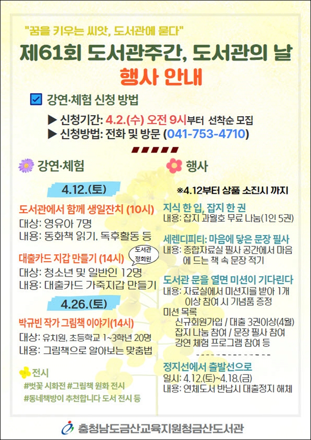 ±Ý»ê±³À°Áö¿øÃ» »êÇÏ ±Ý»êµµ¼°üÀº ¡®2025³â Á¦61ȸ µµ¼°üÀÇ ³¯¡¯°ú µµ¼°üÁÖ°£À» ¸Â¾Æ Àü½Ã, üÇè, °¿¬ µî ´Ù¾çÇÑ ¹®È Çà»ç¸¦ ¿î¿µÇÑ´Ù°í ÀüÇß´Ù.