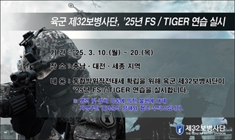 À°±º Á¦32º¸º´»ç´Ü 1970ºÎ´ë´Â ¿À´Â 10ÀϺÎÅÍ 20ÀϱîÁö ´ëÀü Áö¿ª¿¡¼­ ¡®2025³â FS/TIGER¿¬½À¡¯À» ½Ç½ÃÇÑ´Ù°í ¹àÇû´Ù.À̹ø ÈÆ·ÃÀº ºÏÇÑÀÇ È¸»öÁö´ë...