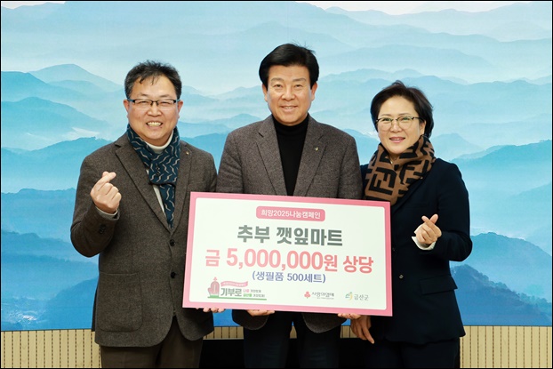 Ãߺβ¢ÀÙ¸¶Æ®(´ëÇ¥ °­Æ÷±¸, »çÁø ¿ÞÂÊ)´Â Áö³­ 5ÀÏ ±Ý»ê±º¿¡ 500¸¸¿ø »ó´çÀÇ »ýÇÊǰ 500¼¼Æ®¸¦ ±âŹÇϸç Áö¿ª »çȸ¸¦ À§ÇÑ µû¶æÇÑ ³ª´®À» ½ÇõÇß´Ù.