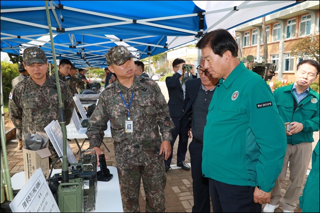 ±º ºÎ´ëÀÇ ÀÛÀüȯ°æÀ» ÀÌÇØÇÏ°í ¾Èº¸ °ø°¨´ë ¹× ´ë±º ½Å·Úµµ Çâ»óÀ» À§ÇÑ ¡®±Ý»ê±ºÃ» ±º(ÏÚ)ÀåºñÀü½Ãȸ¡¯°¡ Áö³­ 16ÀÏ ±Ý»ê±ºÃ» ¾Õ ÁÖÂ÷Àå¿¡¼­ °³ÃֵƴÙ.