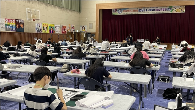 2024Çг⵵ Á¦56ȸ ÃæÃ»³²µµ Áß¡¤°íµîÇлý ¹Ì¼ú½Ç±â´ëȸ´Â âÀÇÀûÀΠǥÇö´É·ÂÀ» ½ÅÀåÇϰí, ½É¹ÌÀû ¾È¸ñÀ» °®Ãá âÀÇÀû ÀÎÀ縦 À°¼ºÇϰíÀÚ ¸¶·ÃÇÑ ÀÚ¸®·Î ÁßÇлý 62¸í, °íµîÇлý 49¸í, ÃÑ 111¸íÀÇ ÇлýµéÀÌ ¼Ò¹¦, Çѱ¹È­, ¼öäȭ, Á¶¼Ò, ¼­¿¹, µðÀÚÀÎ, ¸¸È­ µî 10°³ Á¾¸ñ¿¡ Âü¿©Çß´Ù.
