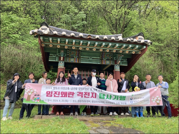À̳¯ Âü°¡ÀÚµéÀº ±Ý»ê 5´ë ÀüÅõÀÎ °³Æ¼ÀüÅõ(Á¦¿ø¸é ÀαÙ), ÀÌÄ¡ÀüÅõ(Áø»ê¸é ÀαÙ), ´«¹úÀüÅõ(±Ý¼º¸é ÀαÙ), ¿¬°ïÆòÀüÅõ(±Ý¼º¸é ÀαÙ), Ⱦ´çÃÌÀüÅõ(±Ý»êÀ¾ ÀαÙ)°¡ ¹ú¾îÁ³´ø Áö¿ªÀ» ´ä»çÇϸç ÀÓÁø¿Ö¶õ Áß ±Ý»ê ÀüÅõ¿¡ ´ëÇØ ¹è¿ì°í, ³ª¶ó¸¦ Áö۱â À§ÇØ ¸ñ¼ûÀ» ¹ÙÄ£ Á¶»óµéÀÇ ³ÌÀ» ±â¸®¸ç ¾ÖÇâ½ÉÀ» Á¦°íÇß´Ù.