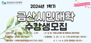 ±Ý»ê±ºÀº ¿À´Â 25ÀϺÎÅÍ 4¿ù4ÀϱîÁö ±Ý»ê´Ù¶ô¿ø¿¡¼­ ¿î¿µÇÏ´Â Ãæ³²±Ý»ê½Ã¹Î´ëÇÐ 1Çб⠼ö°­»ýÀ» ¼±Âø¼øÀ¸·Î 120¸í ¸ðÁýÇÑ´Ù.À̹ø °úÁ¤¿¡¼­´Â Àι® ±³¾ç ¹× ½Ã´ë...