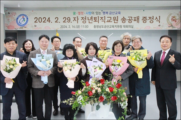 ±Ý»ê Áö¿ª¿¡¼­ Á¤³âÅðÀÓÀ» ¸ÂÀº ±³¿øµéÀº ÃߺÎÃʵîÇб³ ¾çÁ¤¼÷ ±³ÀåÀ» ºñ·ÔÇØ ÃÑ 11¸íÀ¸·Î ÅðÀÓÀÚ ¾à·Â ¼Ò°³, ±³À°Àå Àλ縻, ¼Û°øÆÐ¿Í ²É´Ù¹ß ÁõÁ¤, ÅðÀÓ ±³¿ø ¼Ò°¨, ±â³äÃÔ¿µ ¼øÀ¸·Î ÁøÇàµÆ´Ù.
