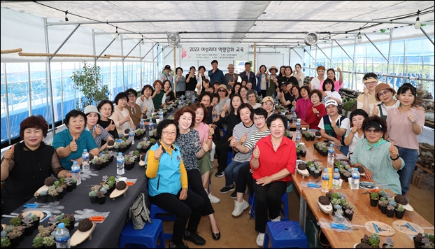 ±Ý»ê±º¿©¼º´ÜüÇùÀÇȸ(ȸÀå ±è¿µÀÚ)´Â Áö³­ 16ÀÏ ±Ý»ê±º ³²À̸鿡 ¼ÒÀçÇÑ ´ÙÀ°½Ä¹° üÇè³óÀå¿¡¼­ ¿©¼º´Üü ȸÀå ¹× È¸¿ø 48¿© ¸íÀÌ Âü¿©ÇÑ °¡¿îµ¥ ¿©¼º¸®´õ ¿ª·®°­È­ ±³À°À» ¿î¿µÇß´Ù.