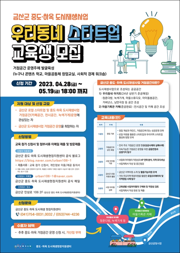 ±Ý»ê±ºÀº ¿À´Â 19ÀϱîÁö Áßµµ¡¤ÇÏ¿Á µµ½ÃÀç»ý»ç¾÷ ÀÏȯÀ¸·Î ÃßÁøÇÏ´Â ¿ì¸®µ¿³× ½ºÅ¸Æ®¾÷ ±³À°»ýÀ» ¸ðÁýÇϰí ÀÖ´Ù.