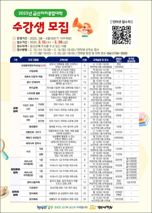 ±Ý»ê±º, 2025³â ±Ý»êÀÚÄ¡Á¾ÇÕ´ëÇÐ ¼ö°­»ý ¸ðÁý