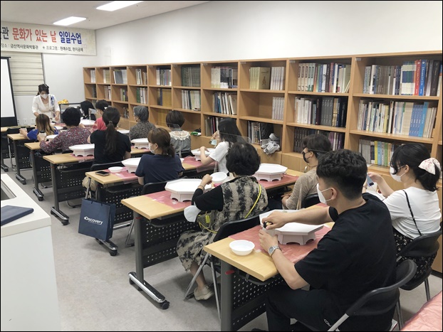 ¿ø¿¹ ¼ö¾÷¿¡¼­´Â ¼Õ´Ô¸ÂÀÌ¿ë Å×À̺í Àå½Ä°ú ÁýµéÀÌ ¼±¹°·Î Ȱ¿ëÇÒ ¼ö ÀÖ´Â Çöó¿öÆ®¸® Á¦ÀÛ ±³À°À» Á¦°øÇßÀ¸¸ç, ÇÑÁö°ø¿¹ ¼ö¾÷À» ÅëÇØ¼­´Â ÇÕÁö³ª ¿Àµ¿³ª¹«·Î ¸¸µç Ʋ À§¿¡ »öÀ» ¹°µéÀÎ ÇÑÁö¸¦ ºÙÀÌ°í ´Ù½Ã ±× À§¿¡ ¿©·¯ ¸ð¾çÀ» ºÙ¿© »ýȰ¿ëǰÀ» ¸¸µå´Â ½Ã°£À» °¡Á³´Ù.