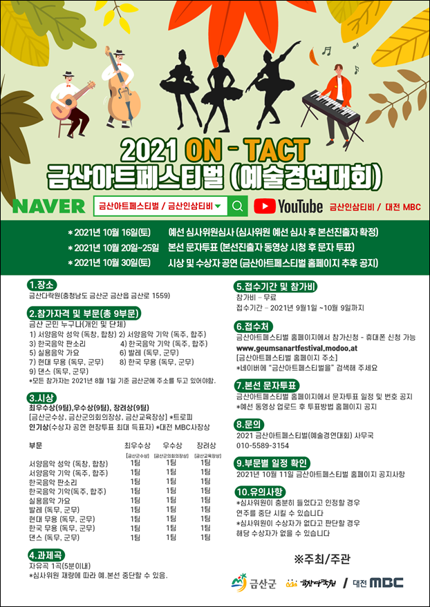 Á¢¼ö´Â ±Ý»ê¾ÆÆ®Æä½ºÆ¼¹ú ȨÆäÀÌÁö¿¡¼ ÇÒ ¼ö ÀÖÀ¸¸ç Âü°¡ºñ´Â ¹«·á´Ù. Âü°¡ ÀÚ°ÝÀº 2021³â 8¿ù1ÀÏ ±âÁØ ±Ý»ê±º¿¡ ÁÖ¼Ò¸¦ µÎ°í ÀÖ´Â ±º¹ÎÀ¸·Î °úÁ¦°îÀº 5ºÐ ³»¿Ü 1°îÀ» ÁغñÇÏ¸é µÈ´Ù.