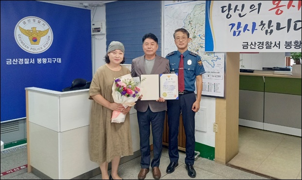 ¡ã±Ý»ê°æÂû¼­ È«¼ºÃµ ºÀȲ Áö±¸´ëÀå(»çÁø ¿À¸¥ÂÊ)ÀÌ 26ÀÏ ºÀȲÁö±¸´ë ¼Ò¼Ó ÁֹΰæÂû ´ë¿ø Àåöȣ¾¾¿¡°Ô °¨»çÀåÀ» Àü¼öÇÑ ÈÄ ±â³ä»çÁøÀ» ÃÔ¿µÇÏ´Â ¸ð½À. ¨Ï±Ý»ê°æÂû¼­