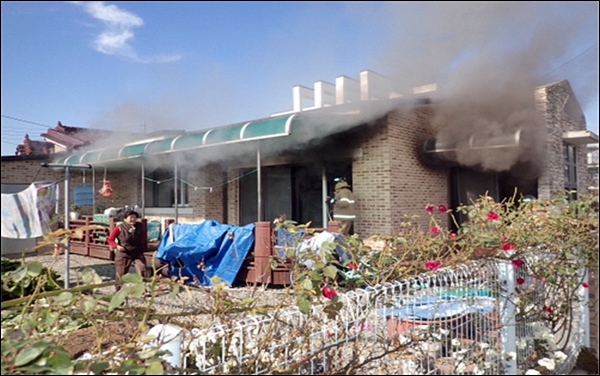¼Ò¹æ¼¿¡ µû¸£¸é ½Å°íÀÚ ¿°¸ð(¿©,56)¾¾´Â Áý¸¶´ç¿¡¼ ÀÏÇÏ´Ù°¡ ¿·Áý ÁÖÅà ¾È¿¡¼ °ËÀº¿¬±â°¡ ¿Ã¶ó ¿À´Â °ÍÀ» ¸ñ°ÝÇϰí ÇöÀå È®ÀÎ ÈÄ 119¿¡ ½Å°íÇß°í ½Å¼ÓÇÏ°Ô ÁÖÅà ³»ºÎ¿¡ ÀÖ´ø ¼Òȱ⸦ µé°í ÈÀ縦 Ãʱ⿡ Áø¾ÐÇØ ´ëÇüÈÀç ¹ß»ýÀ» ÀúÁöÇß´Ù.