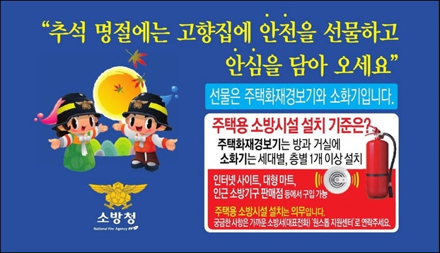 ¼Ò¹æ¼­¿¡¼­´Â Ãß¼®À» ¾ÕµÎ°í Äڷγª19 ÀçÈ®»êÀ» ¹æÁöÇϰíÀÚ °íÇâÁý ¹æ¹® ÀÚÁ¦¸¦ ±Ç°íÇÏ´Â Á¤ºÎ ½ÃÃ¥¿¡ µû¶ó, Äڷγª19 °¨¿°º´ ±Øº¹°ú È­Àç·ÎºÎÅÍ ¾ÈÀüÇÑ ¸íÀýÀ» º¸³»ÀÚ´Â ÃëÁö·Î °¡Á·ÀÇ ¾ÈÀüÀ» À§ÇÏ´Â ¸¶À½À» ´ãÀº ¡®ÁÖÅÿë¼Ò¹æ½Ã¼³¡¯ ¼³Ä¡¸¦ Ã˱¸ÇÏ´Â ºñ´ë¸é È«º¸¸¦ ÃßÁøÇϰí ÀÖ´Ù.
