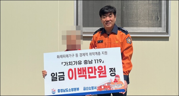 ±Ý»ê¼Ò¹æ¼­´Â Áö³­ 14ÀÏ ÃæÃ»³²µµ ¼Ò¹æº»ºÎ°¡ ÁÖ°üÇÑ ¡®°¡Ä¡°¡À¯ Ãæ³²119¡¯ ±âºÎ »ç¾÷À» ÅëÇØ ¸ð±ÝµÈ ¼º±ÝÀ» Áö³­ÇØ ±Ý»ê±º ³» ÁÖÅà ȭÀç·Î »ýȰ ÅÍÀüÀ» ÀÒÀº °¡±¸¿¡ Àü´ÞÇß´Ù°í ¹àÇû´Ù.