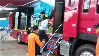 ¡ã ¾ÈÈñÁ¤ Ãæ³²Áö»ç°¡ 2017±Ý»ê¼¼°èÀ묽ºÆ÷Àå¿¡ ¹èÄ¡µÈ 119üÇèÂ÷·®¿¡ ž½ÂÇÏ´Â ¸ð½À.±Ý»ê¼Ò¹æ¼­´Â 2017±Ý»ê¼¼°èÀ묽ºÆ÷ ÀλïÃàÁ¦ Çà»çÀå¿¡¼­ ¡®À̵¿Çü ...