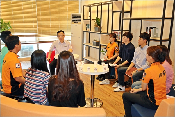 ¡®µÎµå¸²¡¯Àº ¼Ò¹æ°ø¹«¿ø°£ ¼ÒÅë ¹× Á¦¾È Ȱ¼ºÈ­¸¦ À§ÇØ ¿î¿µµÇ°í ÀÖÀ¸¸ç, ÀÏÀ» ½ÃÀÛÇϱâ Àü »ó´ë¿Í ¼ÒÅëÇϱâ Çϱâ À§ÇØ ¹®À» µÎµå¸° ´Ù´Â Àǹ̷ΠÁ÷¿ø°£ÀÇ ¼ÒÅë°ú È­ÇÕ¡¤°ø°¨À» »ó¡ÇÑ´Ù.
