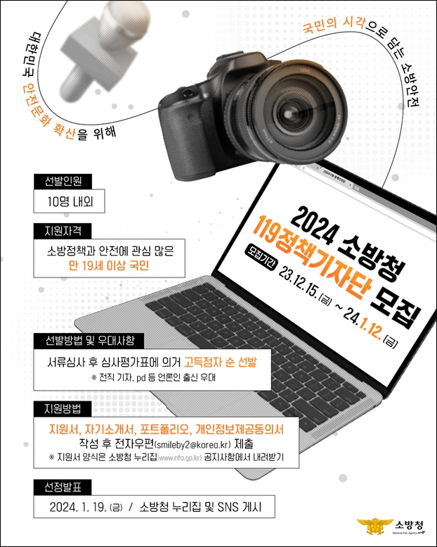 ¼±¹ßµÈ ±âÀÚ´ÜÀº 2024³â 2¿ùºÎÅÍ 12¿ù±îÁö 1³â°£ ±â»ç ÀÛ¼º, ÄÜÅÙÃ÷ Á¦ÀÛ Âü¿©, Á¤Ã¥ ¼Ò°³ µî ´Ù¾çÇÑ È°µ¿À» ÇÏ°Ô µÈ´Ù. Á¢¼ö´Â ¿À´Â 1¿ù 12ÀϱîÁö ÀüÀÚ¿ìÆí(smileby2@korea.kr)À¸·Î¸¸ °¡´ÉÇÏ´Ù. ½Åû¼­ ¹× ÀÚ¼¼ÇÑ »çÇ×Àº ±Ý»ê¼Ò¹æ¼­ ȨÆäÀÌÁö¿¡¼­ È®ÀÎÇÒ ¼ö ÀÖ´Ù.