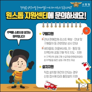 ¡®ÁÖÅÃ¿ë ¼Ò¹æ½Ã¼³ ¿ø½ºÅé Áö¿ø¼¾ÅÍ¡¯´Â ÁÖÅÃ¿ë ¼Ò¹æ½Ã¼³(¼ÒÈ­±â, ´Üµ¶°æº¸Çü °¨Áö±â)¿¡ °üÇÑ °¢Á¾ ¹®ÀÇ ¹× ¹Î¿ø»ó´ã ⱸ¸¦ ÀÏ¿øÈ­ÇÏ°í ¼ö¿äÀÚ°¡ ¼Õ½±°Ô ±¸¸Å¡¤¼³Ä¡ÇÒ ¼ö ÀÖµµ·Ï ¾È³» Áö¿øÇÏ´Â ÇàÁ¤¼­ºñ½º´Ù.