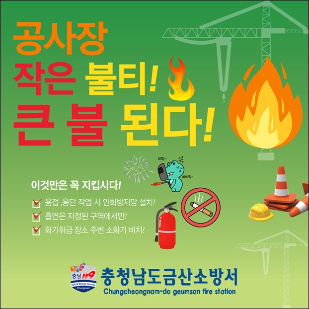 ±Ý»ê¼Ò¹æ¼­(¼­Àå ÁøÁ¾Çö)´Â °ø»çÀå ¿ëÁ¢ÀÛ¾÷ ½Ã ºÒƼ ºñ»ê, ´ã¹è²ÇÃÊ µî ºÎÁÖÀÇ·Î ÀÎÇÑ È­Àç°¡ ¹ß»ýÇÏÁö ¾Êµµ·Ï È­À翹¹æ¿¡ ÁÖÀǸ¦ ±â¿ï¿© ÁÙ °ÍÀ» 15ÀÏ ´çºÎÇß´Ù.