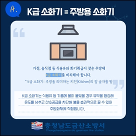 ±Ý»ê¼Ò¹æ¼­(¼­Àå °­À±±Ô)´Â 9ÀÏ ½Ä¿ëÀ¯ µî À¯·ù »ç¿ë°ú È­±âÃë±ÞÀÌ ÀæÀº À½½ÄÁ¡ Áֹ濡¼­ È­Àç ¹ß»ý ½Ã È¿°úÀûÀÎ Ãʱ⿡ È­Àç ´ëÀÀÀ» À§ÇØ K±Þ ¼ÒÈ­±â¸¦ ºñÄ¡ÇØ...