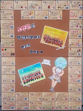 Àü´Þ ¹ÞÀº º¸µåÆÇ¿¡´Â¡®¿ì¸®µéÀÇ ¿µ¿øÇÑ ¾îº¥Á®½º! »ç¶ûÇÕ´Ï´Ù.¡¯,¡®Áö±¸¸¦ ÁöŰ´Â 119½´ÆÛ¸Ç ¿ì¸®°¡ Ç×»ó ÀÀ¿øÇÕ´Ï´Ù¡¯¶ó´Â ¸Þ½ÃÁö¿Í ÆíÁö¿¡ °¨»çÇÔ°ú ÀÀ¿øÀÇ ¸¶À½ÀÌ ´ã°ÜÀÖ¾ú´Ù.