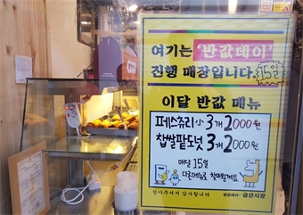 (»ç)±Ý»ê½ÃÀå »óÀÎȸ 50°³ »ó°¡°¡ ¸Å´Þ 15ÀÏ ¡®¹Ý°ªµ¥ÀÌ¡¯ÇÒÀÎ Çà»çÁøÇàÀ» ¾Ë¸®´Â È«º¸¹°À» °Ô½ÃÇØ ³õ°í ¿µ¾÷À» Çϰí ÀÖ´Ù.(»çÁøÁ¦°ø=±Ý»ê±ºÃ»)(»ç)±Ý»ê½ÃÀå»ó...