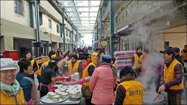 ±Ý»ê½ÃÀå »óÀÎ ÁÖ°üÀ¸·Î ±Ý»ê½ÃÀå ÀÏ¿ø¿¡¼­ ¿ÀÈÄ 1½ÃºÎÅÍ ÁøÇàµÈ À̳¯ Çà»ç ¿¡¼­´Â µ¿Áö¸¦ ¸Â¾Æ ½ÃÀå»óÀεéÀÌ Á÷Á¢ ÁغñÇÑ 500ÀκÐÀÇ ÆÏÁ×°ú ¶±À» Çà»çÀåÀ» ãÀº ±º¹Îµé°ú ¹«·á·Î ³ª´³´Ù.