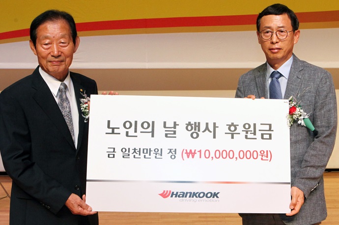 Çѱ¹Å¸À̾î(´ëÇ¥ÀÌ»ç ¼­½ÂÈ­)´Â 27ÀÏ Ãæ³² ±Ý»ê±º ¼ÒÀç ±Ý»ê´Ù¶ô¿ø¿¡¼­ ¿­¸° ±Ý»ê±º ³ëÀÎÀÇ ³¯ ±â³ä½Ä¿¡¼­ ¹Úµ¿Ã¶ ±Ý»ê±º¼ö, ÅÂÁø¼ö ´ëÇѳëÀÎȸ ±Ý»êÁöȸÀå, Çѱ¹Å¸ÀÌ¾î ½Åµ¿ÇÊ ±Ý»ê°øÀåÀåÀ» ºñ·ÔÇÑ °ü°èÀÚ ¹× Áö¿ª ¾î¸£½Å 1000¿©¸íÀÌ Âü¼®ÇÑ °¡¿îµ¥ ³ëÀÎÀÇ ³¯ ÈÄ¿ø±Ý 1000¸¸¿øÀ» Àü´ÞÇß´Ù.