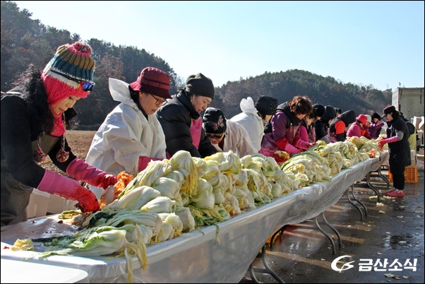 °¡À»À̶ó°í Çϱâ´Â ¸ÔÀÝÀº 18ÀÏ ±Ý»ê±º Á¦¿ø¸é ¸í°î¸®¸¦ ã¾ÒÀ» ¶§ Èï°Ü¿î ³ë·§¼Ò¸®¿Í ±âº» ÁÁ°í ¸ÅÄÞÇÑ ±èÄ¡ ³»À½ÀÌ ÄÚ¸¦ °£Áö·´°Ô Çß´Ù. À̰÷¿¡¼­´Â ¡®(»ç)Èñ¸ÁÀÇ ¾ð´ö¡® ȸ¿øÀ» ºñ·ÔÇÑ 100¿©¸íÀÇ ÀÚ¿øºÀ»çÀÚµéÀÌ Á¤¼ºÀ» µé¿© ±èÄ¡¸¦ ¸¸µé°í ÀÖ¾ú´Ù.