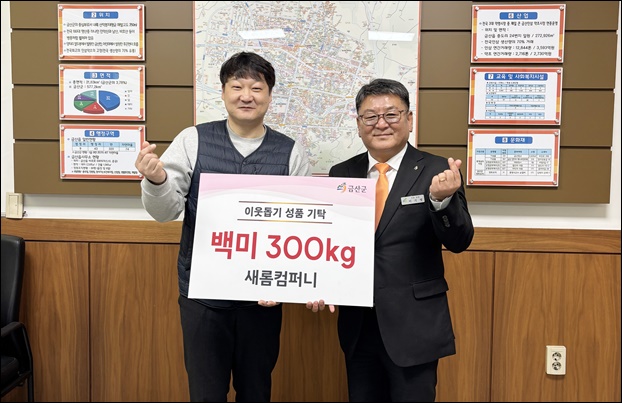 »õ·ÒÄÄÆÛ´Ï(´ëÇ¥ ¹ÚÀçÁø, »çÁø ¿ÞÂÊ)°¡ Áö³­ 26ÀÏ ±Ý»êÀ¾ÇàÁ¤º¹Áö¼¾Å͸¦ ¹æ¹®ÇØ Áö¿ª ³» °æ·Î´ç¿¡ ÀüÇØ ´Þ¶ó¸ç 100¸¸¿ø »ó´çÀÇ ¹é¹Ì 10kg 30Æ÷¸¦ ±âŹÇß´Ù.