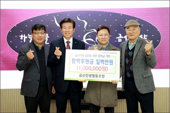 ±Ý»ê±ºÀº ±Ý»êÁø»ýÇùµ¿Á¶ÇÕ(´ëÇ¥ Á¤¿ø½Ä)ÀÌ Áö³­ 19ÀÏ Áö¿ª »çȸ¿Í ÀÎÀç ¾ç¼ºÀ» À§ÇØ 100¸¸ ¿øÀÇ ÀåÇбâ±ÝÀ» ±âºÎÇß´Ù°í ¹àÇû´Ù.±Ý»êÁø»ýÇùµ¿Á¶ÇÕÀº Áö¿ªÀÇ Æ¯»ê...