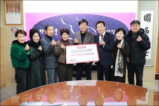 Çѱ¹¿Ü½Ä¾÷Áß¾Óȸ ±Ý»ê±ºÁöºÎ(ÁöȸÀå ±èâÇö)¿Í ´ëÇѹ̿ë»çȸ ±Ý»ê±ºÁöºÎ(ÁöȸÀå ¼­Á¤¾Ö)´Â Áö³­ 10ÀÏ ±Ý»ê±ºÃ»À» ã¾Æ ÃÑ 210¸¸¿ø »ó´çÀÇ ¶±±¹¶±(2kg) 300¹Ú½º¸¦ ±âŹÇß´Ù.