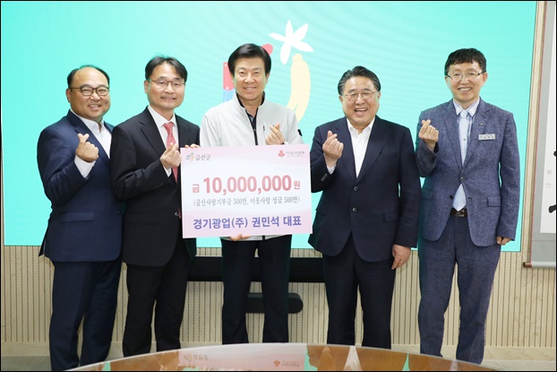 ±Ý»ê±ºÀº °æ±â±¤¾÷ÁÖ½Äȸ»ç ±Ç¹Î¼® ´ëÇ¥°¡ Áö³­ 24ÀÏ ±Ý»ê±º ¹ßÀü ¹× ÀÌ¿ô»ç¶ûÀ» À§ÇØ °íÇâ»ç¶û±âºÎ±Ý ÃÖ°íÇѵµ¾× 500¸¸¿ø°ú ÀÌ¿ô»ç¶û ¼º±Ý 500¸¸¿ø µî ÃÑ 1000¸¸ ¿øÀ» ±âŹÇß´Ù°í ¹àÇû´Ù.