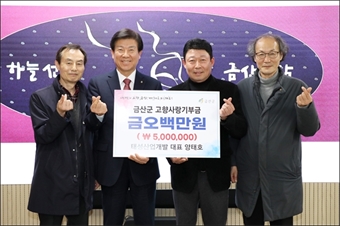 (ÁÖ)żº°³¹ß ¾çÅÂÈ£ ´ëÇ¥°¡ Áö³­ 26ÀÏ °íÇâ»ç¶û±âºÎÁ¦ ÃÖ°íÇѵµ¾× 500¸¸ ¿øÀ» ±Ý»ê±º¿¡ ±âºÎÇß´Ù. ¾ç ´ëÇ¥´Â ±Ý»ê±º¿¡¼­ »ç¾÷ü¸¦ ¿î¿µÇϸ鼭 Áö¿ª»çȸ ¹ßÀüÀ»...
