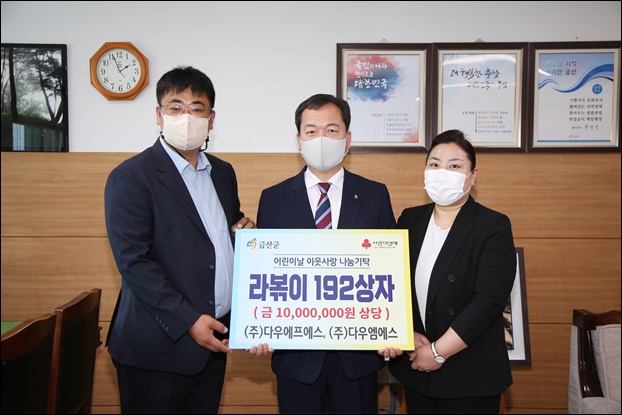 ±Ý»ê±º¿¡ ¼ÒÀçÇÑ (ÁÖ)´Ù¿ì¿¡ÇÁ¿¡½º(´ëÇ¥ ±è¿µ¿Á)¿Í (ÁÖ)´Ù¿ì¿¥¿¡½º(´ëÇ¥ ÃÖÈ¿¼·)°¡ Áö³­ 12ÀÏ °ü³» ¾î·Á¿î ¾î¸°À̵鿡°Ô Àü´ÞÇØ ´Þ¶ó¸ç 1000¸¸¿ø »ó´çÀÇ ¶óººÀÌ ½Äǰ 192»óÀÚ¸¦ ±âŹÇϸç ÈÆÈÆÇÔÀ» ÀüÇß´Ù.