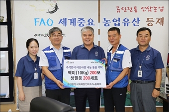 NH³óÇùÀºÇà ±Ý»ê±ºÁöºÎ(ÁöºÎÀå ¾Èµ¿¼®)´Â 27ÀÏ Ãß¼® ¸íÀýÀ» ¸Â¾Æ ¾î·Á¿î ÀÌ¿ôÀ» À§ÇØ ½á´Þ¶ó¸ç ¹é¹Ì(10kg) 100Æ÷¸¦ ±Ý»ê±º¿¡ ±âŹÇß´Ù°í ¹àÇû´Ù. NH...