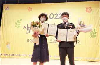 ¡ãÁ¤½Å°Ç°­º¹Áö¼¾ÅÍ ÀüÇâ¼÷ »ý¸í»ç¶ûÆÀÀå(»çÁø ¿ÞÂÊ)°ú ±Ý»ê±ºÀÚÀ²¹æ¹ü¿¬ÇÕ´ë Á¤´öÀç ´ëÀåÀÌ Ç¥Ã¢À» ¼ö»óÇÑ ÈÄ ±â³ä»çÁøÀ» ÃÔ¿µÇÏ´Â ¸ð½À. ¨Ï±Ý»ê±ºÃ» ±Ý»ê±º ¹Î°£ °³...