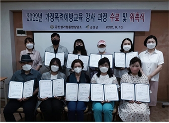 ¡ãÁö³­ 6¿ù10ÀÏ ±Ý»ê¼º°¡Á¤ÅëÇÕ»ó´ã¼Ò¿¡¼­ Á¤Çý¿µ ¼ÒÀå(¿À¸¥ÂÊ »ó´Ü ù¹øÂ°)ÀÌ °¡Á¤Æø·Â¿¹¹æ±³À° °­»ç°úÁ¤ ´ë»óÀڵ鿡°Ô À§ÃËÀåÀ» Àü´ÞÇÏ°í ±â³äÃÔ¿µÀ» Çϰí ÀÖ´Â ¸ð...