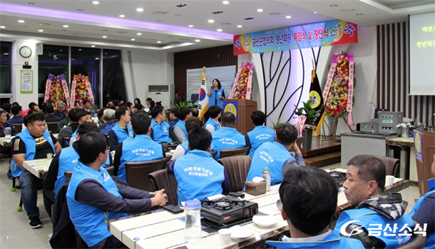 ¹Ù¸£°Ô»ì±â¿îµ¿ ±Ý»ê±ºÇùÀÇȸ(ȸÀå ¹®±â¼±) û³âȸ ÃëÀÓ½Ä ¹× â´Ü½ÄÀÌ 2ÀÏ ¿ÀÈÄ 6½Ã30ºÐ Çѿ찶·¯¸® 2Ãþ¿¡¼ 100¿© ¸íÀÇ °ü°èÀÚµéÀÌ Âü¼®ÇÑ °¡¿îµ¥ Ä¡·¯Á³´Ù.