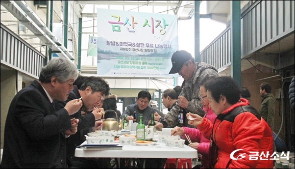 ³ó¸²Ãà»ê½ÄǰºÎ¿Í ±Ý»ê±ºÀÌ ¡®»õÇØ ¸ÂÀÌ ±Ý»ê½ÃÀå È­ÇÕÀÇ À塯 À̶ó´Â ½½·Î°Ç ¾Æ·¡ ÁÖÃÖÇÑ  ¡®Âû¹ä¡¤¹Ì¿ª±¹¡¤ÀýÆí ¹«·á ³ª´®Çà»ç¡¯°¡ 23ÀÏ ¿ÀÀü 11½ÃºÎÅÍ ¿ÀÈÄ 1½Ã±îÁö ±Ý»ê½ÃÀå â¾÷°ñ¸ñ(¹é¼³½Ä´ç ¾Õ °ñ¸ñ)¿¡¼­ °³ÃֵƴÙ.