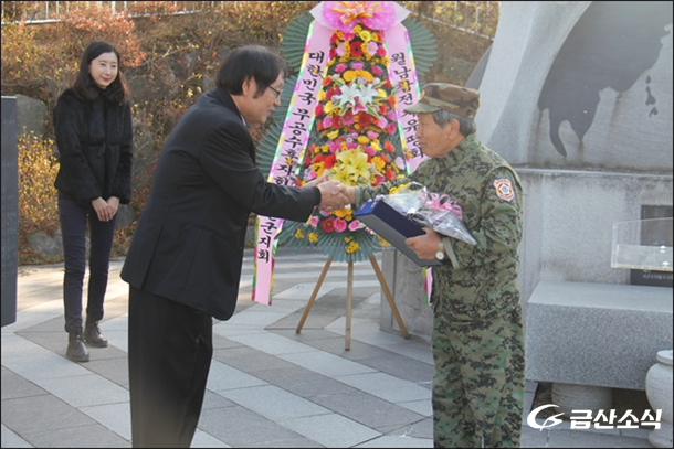 ÀÌ¿ÍÇÔ²² ±èÁ¾ÇÐ ±Ý»ê±ºÀÇÀå(»çÁø ¿ÞÂÊ)Àº ¡°¿ù³²Àü°ú 6.25ÂüÀü¿ë»ç ºÐµéó·³ °Å·èÇϽźеéÀº Á¸°æ¹Þ¾Æ ¸¶¶¥Çϸç, À̺еéÀÇ ³ë°í¸¦ ¸»·Î´Â ´Ù Ç¥ÇöÇÒ ¼ö ¾ø°í, ¿ù³²Àü¿¡¼ Àü»çÇϽŠ26¸íÀÇ ±Ý»êÃâ½Å ¿ë»çµé°ú À¯°¡Á·ºÐµé¿¡°Ô ½É½ÉÇÑ À§·Î¸¦ ¸»¾¸À» µå¸°´Ù¡±¸ç ¡°ºñ·Ï ÂüÀü¿ë»çµé²² Å©°Ô µµ¿Íµå¸®´Â °ÍÀº ¾øÁö¸¸ ±Ý»ê¿¡ ¾Ö±¹¿¡ ´ëÇÑ ±àÁö¸¦ ´À³¢¸é¼, »ýÁ¸ÇØ °è½Å 440¿©¸íÀÇ ÂüÀü¿ë»çµé²²¼ ³²Àº ¿©»ýÀ» ÇູÇÏ°Ô »ýȰÇÏ½Ç ¼ö ÀÖµµ·Ï º¹ÁöºÎ¹® µî Áö¹æºñÀÇ ÇѰ谡 ¹þ¾î³ªÁö ¾Ê´Â ¹üÀ§³»¿¡¼ µµ¿Íµå¸± ¼ö ÀÖµµ·Ï ³ë·ÂÇϰڴ١±°í ÈûÁà ¸»Çß´Ù.