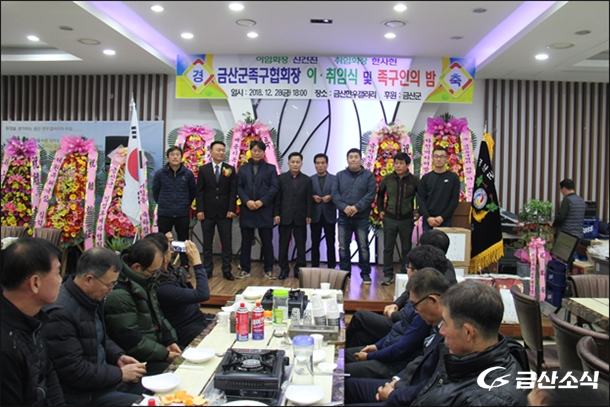 ¡®±Ý»ê±º Á·±¸Çùȸ ȸÀå ÀÌ¡¤ÃëÀÓ½Ä ¹× Á·±¸ÀÎÀÇ ¹ã¡¯ Çà»ç°¡ 28ÀÏ ¿ÀÈÄ 6½Ã30ºÐ ±Ý»êÇѿ찶·¯¸®(Ãæ³² ±Ý»ê±º ³²Àϸé Ȳdz¸® 13)2Ãþ¿¡¼­ ¼ºÈ²¸®¿¡ °³ÃֵƴÙ.