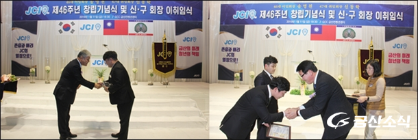 À̾îÁø ÀÌ¡¤ÃëÀӽĿ¡¼ 2108³â ÇÑÇØ µ¿¾È ±Ý»êJC¸¦ À̲ö ¼Û¿µÃµ ȸÀåÀº ¿µ»óÀ¸·Î ÀÌÀӻ縦 ´ë½ÅÇßÀ¸¸ç, ½ÅÀÓ ½Åµ¿ÇРȸÀåÀº ÃëÀӻ翡¼ ¡°¾ÕÀ¸·Î ȸ¿ø¿©·¯ºÐµé°ú ÇÔ²² JCÀÇ ½ÅÁ¶¿Í ¹Ì¼Ç, ºñÁ¯¿¡ °É¸Â´Â Ȱµ¿À» ÆîÄ¡¸ç ±Ý»ê±ºÀÇ ¹ßÀü¿¡ ±â¿©ÇÒ ¼ö ÀÖµµ·Ï ÃÖ¼±À» ´ÙÇϰڴ١±°í ´ÙÁüÇß´Ù.