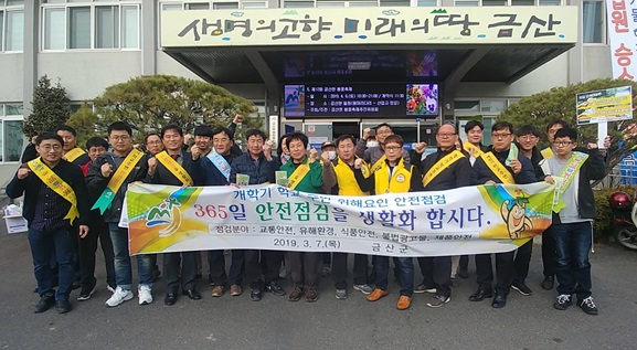 7ÀÏ ±Ý»ê±º 5°³ ºÐ¾ßÀÇ ¾ÈÀüÇÕµ¿Á¡°Ë¹Ý°ú °ü°èÀÚµéÀÌ ±Ý»ê±ºÃ» ¾Õ¿¡¼ ¾ÈÀüÇÑ Çб³ ȯ°æ Á¶¼ºÀ» À§ÇÑ Ä·ÆäÀÎÀ» ½Ç½ÃÇϰí ÀÖ´Ù.(»çÁøÁ¦°ø=±Ý»ê±ºÃ»)