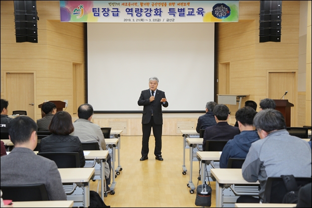 ±Ý»ê±ºÀº Áö³­ 21Àϰú 22ÀÏ Áø»êäñÇູ´©¸®¼¾ÅÍ¿¡¼­ ÆÀÀå±Þ(6±Þ) 50¿©¸íÀ» ´ë»óÀ¸·Î ¡®Á¦1±â ÆÀÀå±Þ ¿ª·®°­È­ Ưº°±³À°¡¯À» ½Ç½ÃÇß´Ù°í 26ÀÏ ¹àÇû´Ù.
