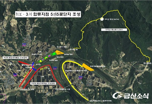 ¹Î¼± 7±â ¹®Á¤¿ì ±º¼öÀÇ °ø¾à»çÇ×ÀÎ ¡°Çâ±â³ª´Â 4°èÀý ²É´ÜÁö¡±¸¦ Á¶¼ºÇϱâ À§ÇØ °­ ±æ µû¶ó À强¶ã(1km)°ú Æ÷Æò¶ã(2km) 3km¿¡ ³ª¶ó²É ¹«±ÃÈ­¿Í ¶óÀ϶ô 750º»À» ½ÄÀçÇÑ ÈÄ Áö¼ÓÀûÀ¸·Î ¹«±ÃÈ­ 10¸®±æÀ» Á¶¼ºÇÒ °èȹÀÌ´Ù.