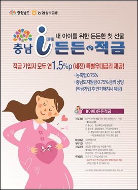 ÀÌ Àû±ÝÀº Ãæ³²µµ¿¡ Áֹεî·ÏÀ» µÐ ÀÓ½ÅºÎ¿Í Ãâ»ê ÈÄ 6°³¿ù ¹Ì¸¸ Ãâ»êºÎ°¡ ´ë»óÀ̸ç, ³óÇùÀÇ ±âº»±Ý¸®¿¡ Ãß°¡·Î ¿¬ 1.5% ¿ì´ë ±Ý¸®¸¦ Àû¿ëÇÏ´Â ÀÚÀ¯ Àû¸³ Àû±ÝÀÌ´Ù.